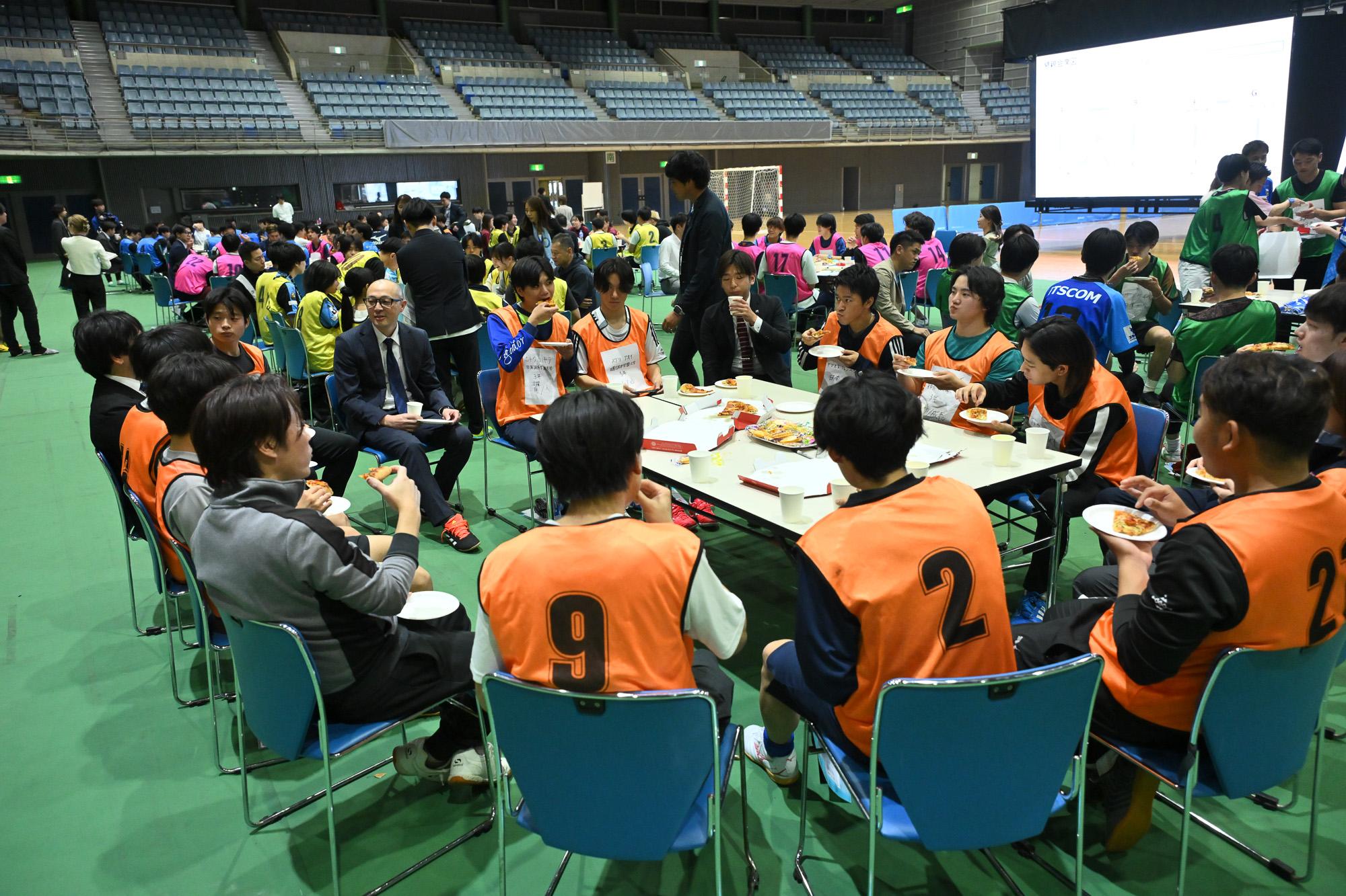 フットサル後、リラックスした雰囲気の中で、さらに深いコミュニケーションの機会を提供